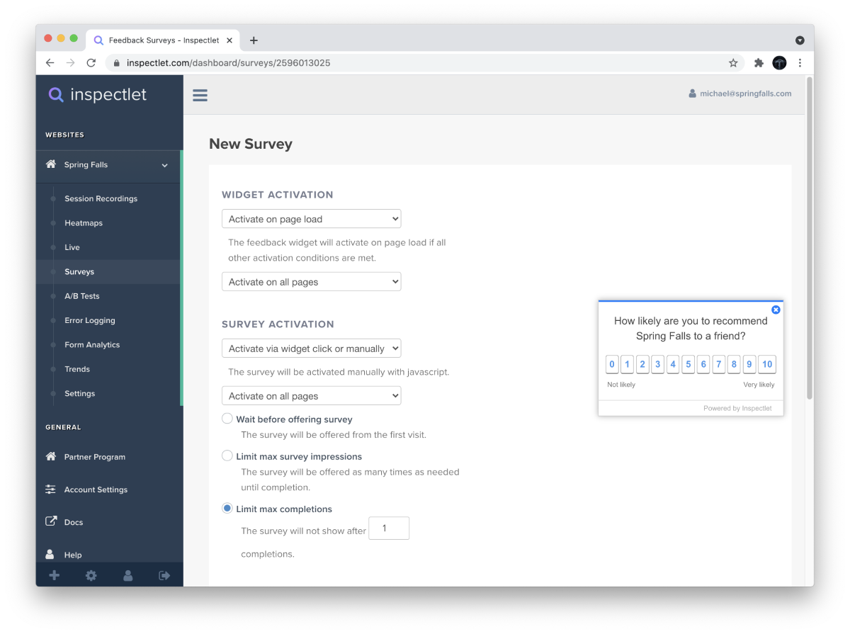 Inspectlet's feedback widget and in-page survey activate while the user is still on your site. Keep track of user sentiment changing over time without any significant interruption to user experience.